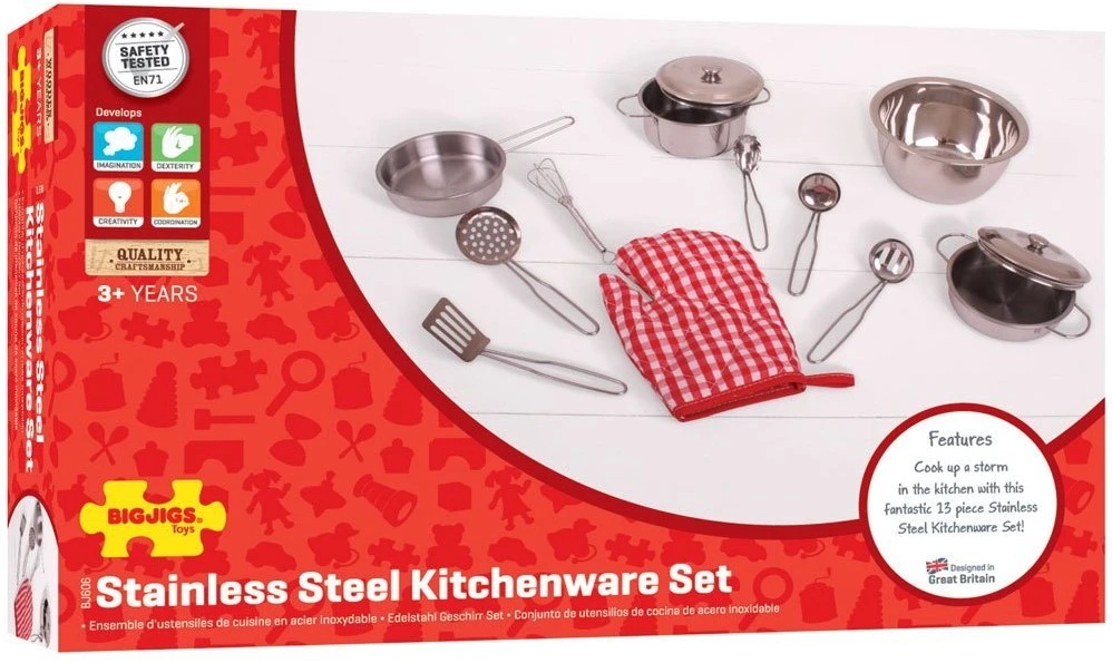 Bigjigs Toys Edelstahl Kochgeschirr-Set