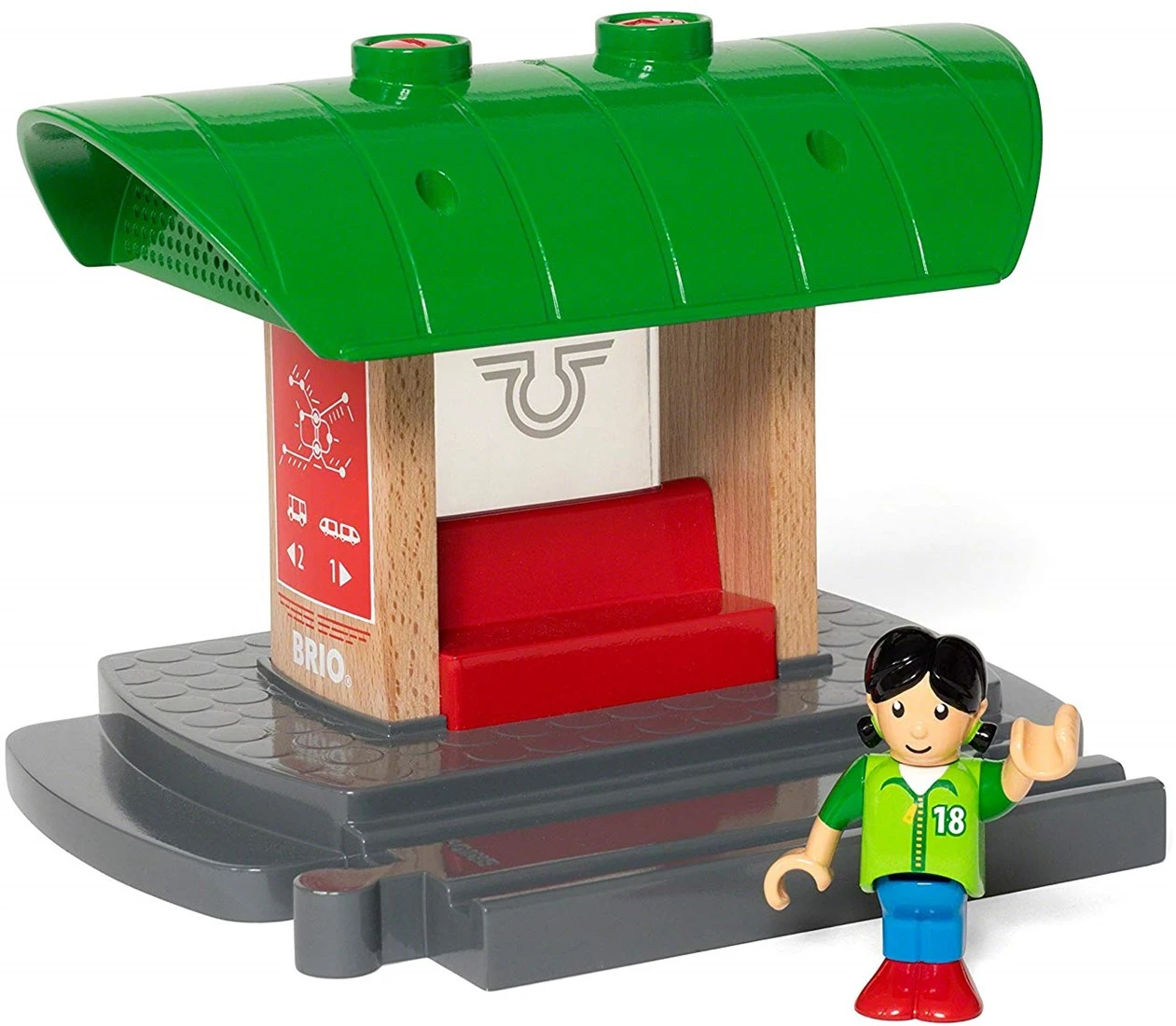 Wer sagt, dass es keinen Spaß macht, auf den Zug zu warten? Dieser wunderbare Bahnhof weist die äußerst beliebte Record & Play-Funktion von BRIO auf. Drücke auf einen Knopf und sprich los – und dann kannst du abhören, was du gesagt hast, indem du auf den anderen Knopf drückst. „Test, Test! Wer möchte den nächsten Zug ansagen?“