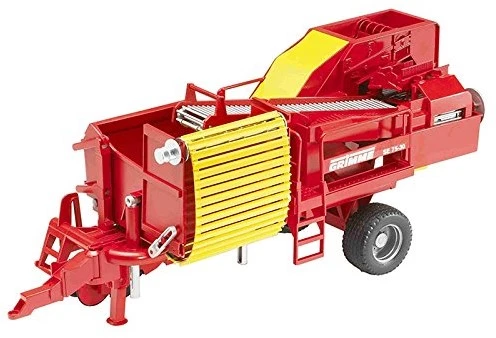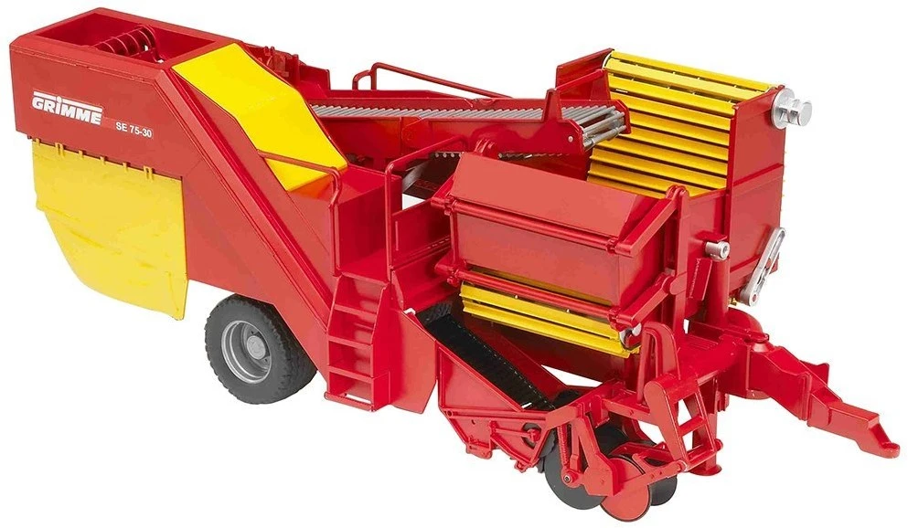 Das Reinigungs- und Verleseband wird durch Betätigen der Handkurbel angetrieben, dadurch wird die Beförderung der Kartoffelimitate in den Kartoffelbunker möglich. Dieser ist zudem höhenverstell- und das Austragsförderband ist ausklappbar. Ein ausklappbarer Stützfuss bietet sicheren Halt, reichhaltige Detaillierung und Profilreifen runden das Bild ab. Zur Spielergänzung kann der Grimme Kartoffelvollernter SE 75-30 mit allen Traktoren der Profi-Serie ausgestattet werden (nicht im Lieferumfang enthalten).