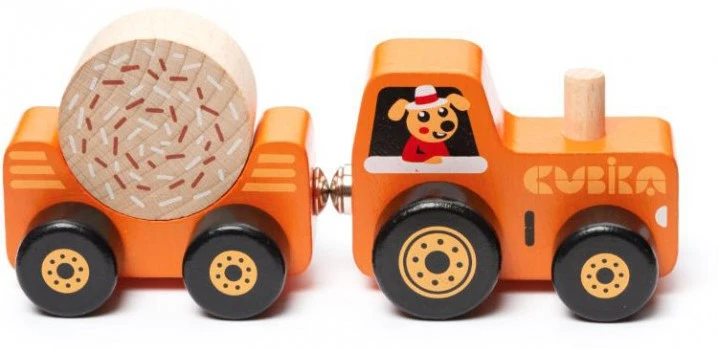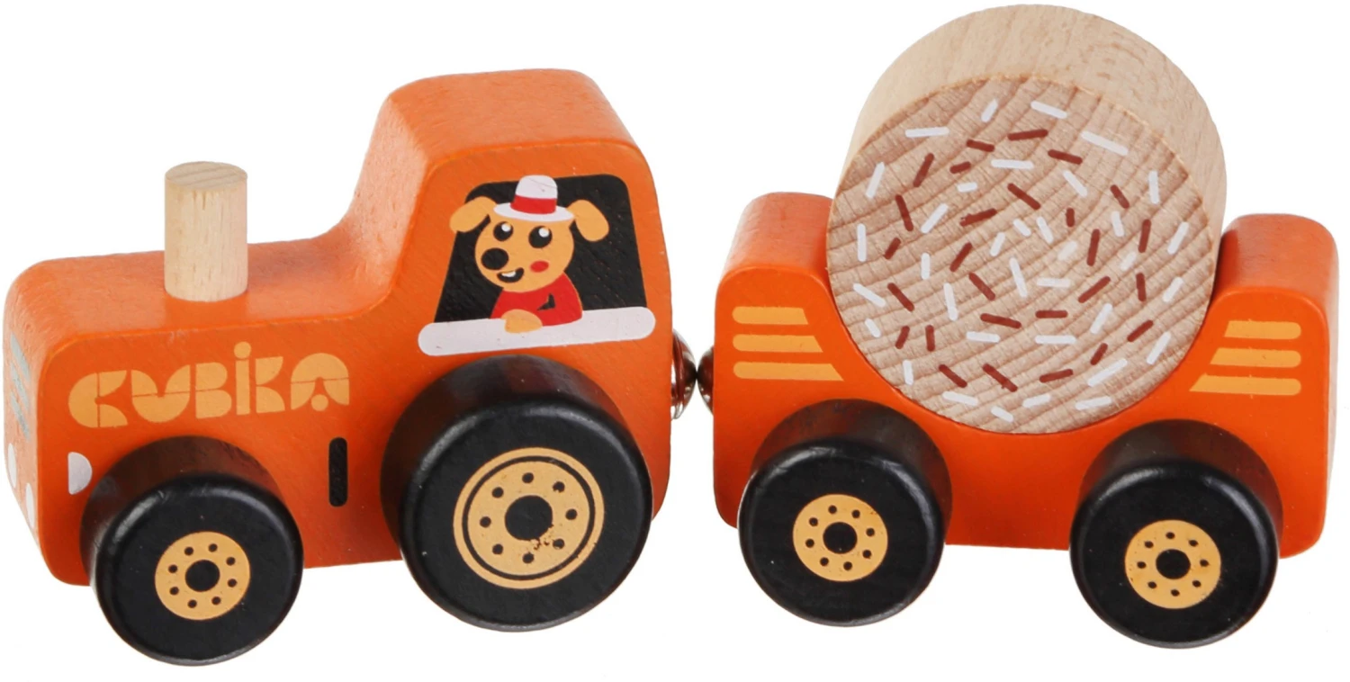Cubika 15351 15351-Tractor de Madera Kinderspielzeug aus Holz, Mehrfarbig
