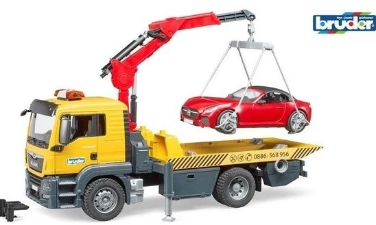 Bruder 03750 – MAN TGS Abschlepp-LKW mit Roadster und Licht und Sound Modul
