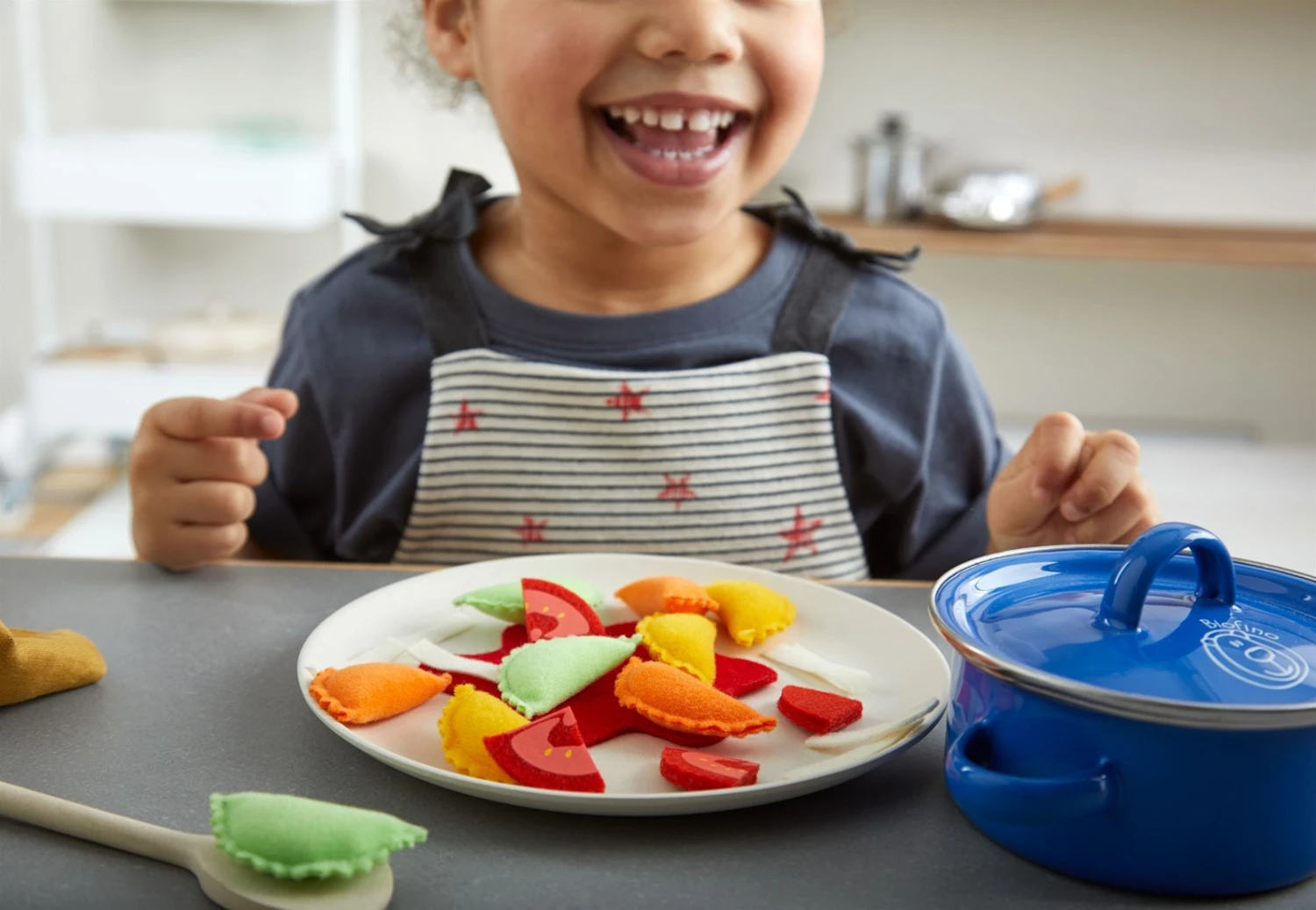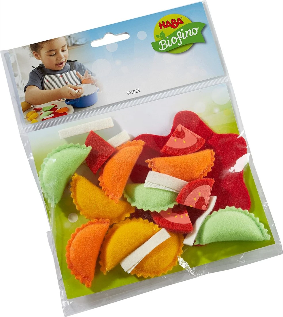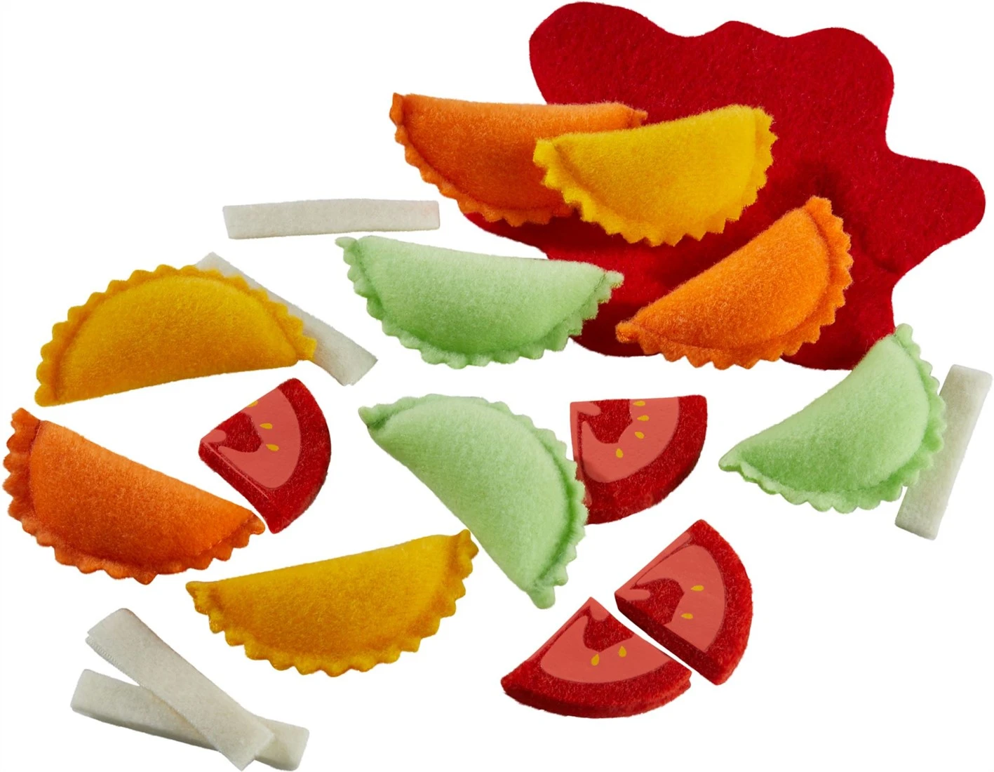 HABA Ravioli. Die liebevoll und realitätsnah gestalteten Ravioli mit Tomatensoße und Käse animieren zu vielerlei lebensnahen Rollenspielen und sind ideal für jede Spielküche.