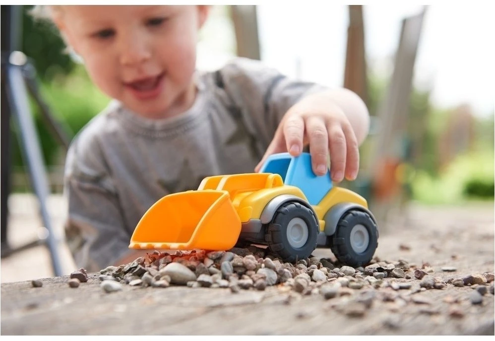 HABA Spielzeugauto Radlader. Auf die Baustelle und losgebaggert! Die Schaufel dieses Radladers lässt sich beladen und rastet in verschiedenen Höhen ein.