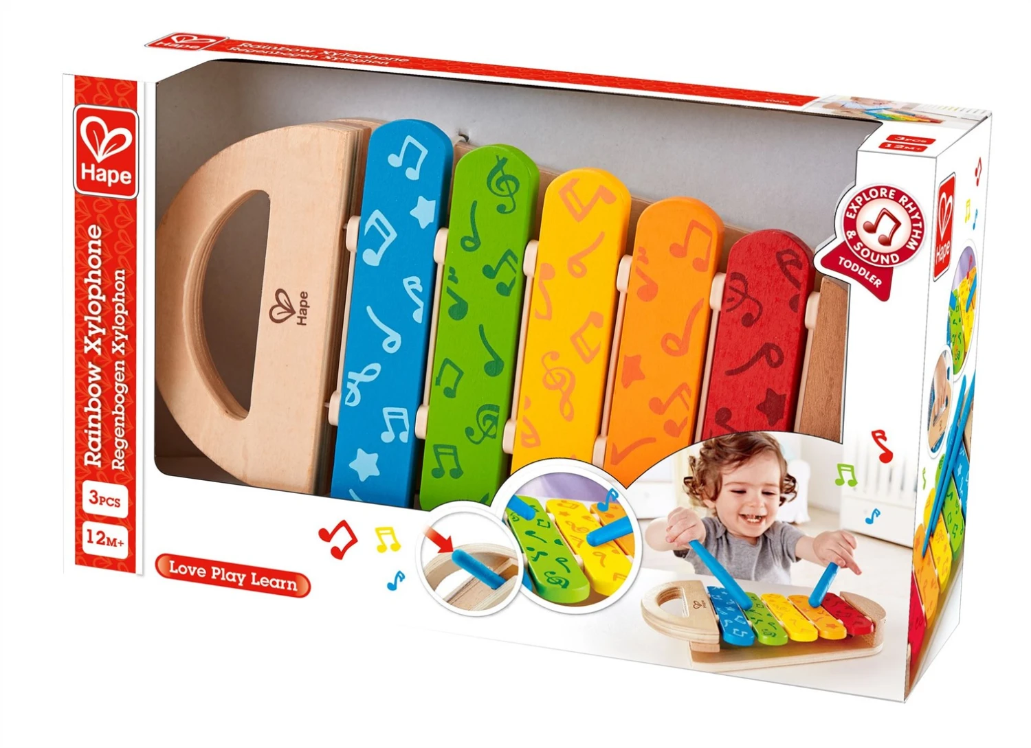 Hape Musik-Stapelwürfel | Sechsteiliges Buntes Musikbox-Spielzeug Aus Holz Für Kinder Ab 18 Monaten