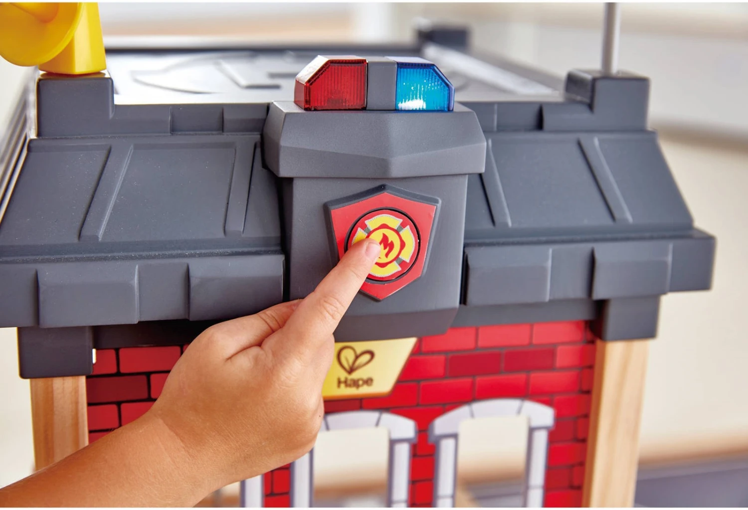Hape Großstadt-Feuerwache Spieleset | Feuerwache Für Kinder Aus Holz, Unterstützt Die Motorische Entwicklung Und Fördert Das Gemeinsame Spiel