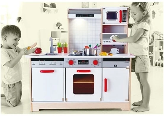 Kinder werden von dieser umfangreichen Allzweck-Küche und ihren verschiedenen Geräten und Funktionen – einschließlich einer einstellbaren Lampe an der Dunstabzugshaube und authentischem Mikrowellen-Signal – begeistert sein.