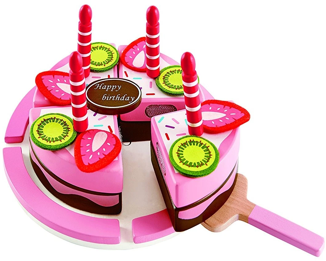 Dieser Geburtstagskuchen eignet sich gut für kleine Rechenaufgaben. Wie viele Kuchenstücke, Früchte und Kerzen gibt es?