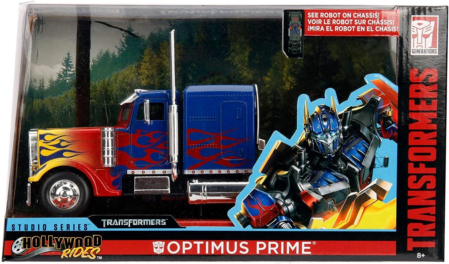 Jada Toys Transformers T1 Optimus Prime, Spielzeugauto aus Die-cast, Auto, Maßstab 1:24, blau/rot