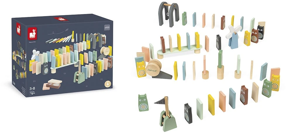 Janod – 28 Holzdominos Kollektion Sweet Cocoon – Baby- Und Kleinkindspielzeug Farbe Auf Wasserbasis – Geschicklichkeitsspiel Entwicklung Von Feinmotorik Und Konzentration – Ab 3 Jahren, J04404