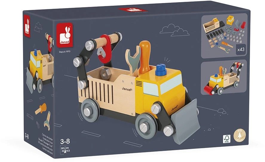 Janod J06470 Brico ‚Kids Bauwagen aus Holz-Bauspielzeug-Entwicklung von Feinmotorik und Fantasie-FSC-Zertifiziert-Ab 3 Jahren
