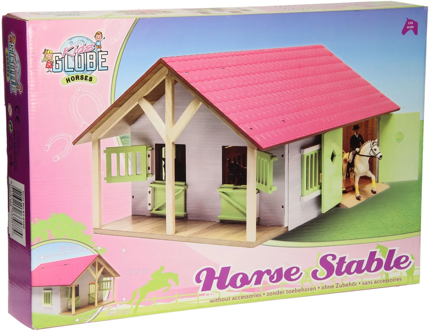 Kids Globe Pferdestall rosa mit 2 Boxen und Schuppen 1:24 51×40,5×27,5cm
