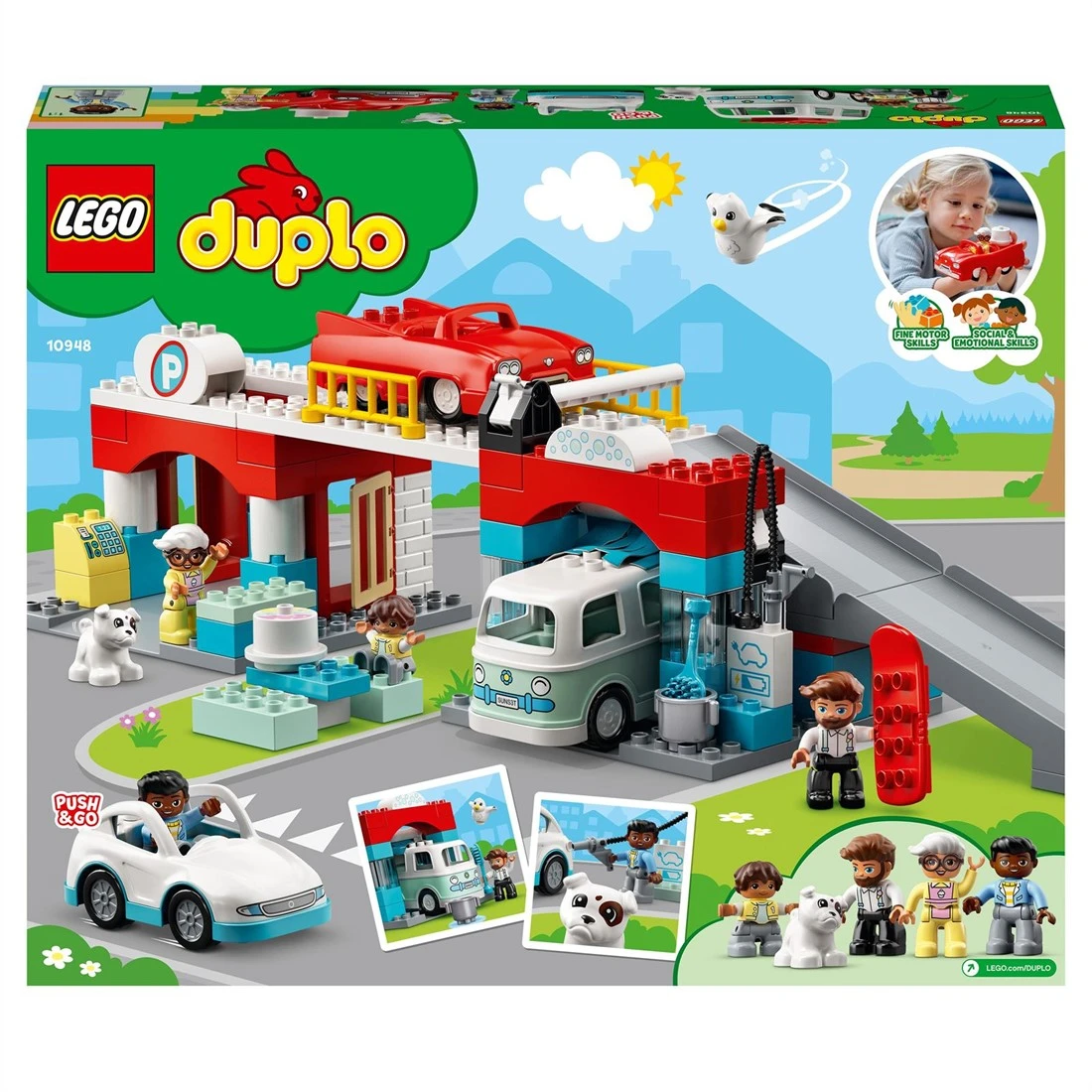 - LEGO® DUPLO® Parkhaus mit Autowaschanlage (10948) ist ein vielseitiges Autopflege-Spielset mit zahlreichen entwicklungsfördernden Aktivitäten, fantasievollen Funktionen und unzähligen Spielmöglichkeiten.