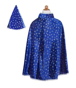 Great Pretenders – Glitter Wizard Cape&Hat Mützen, Masken Und Partyzubehör, Blau (61083)