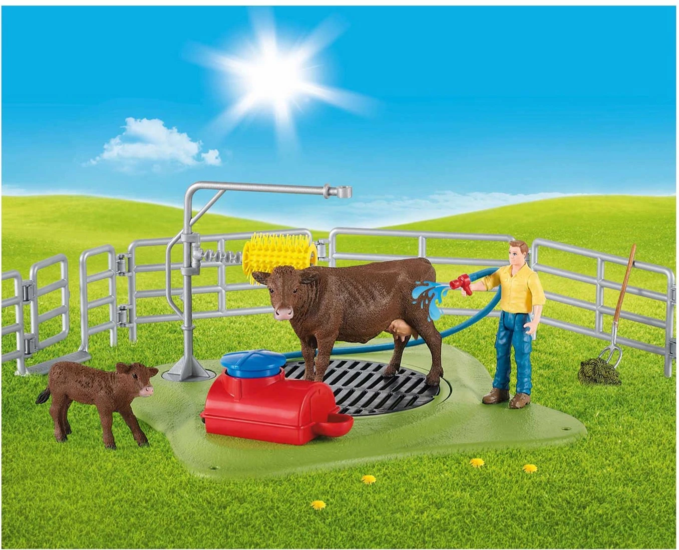 SCHLEICH 42529 Spielset – Kuh Waschstation (Farm World), Mix