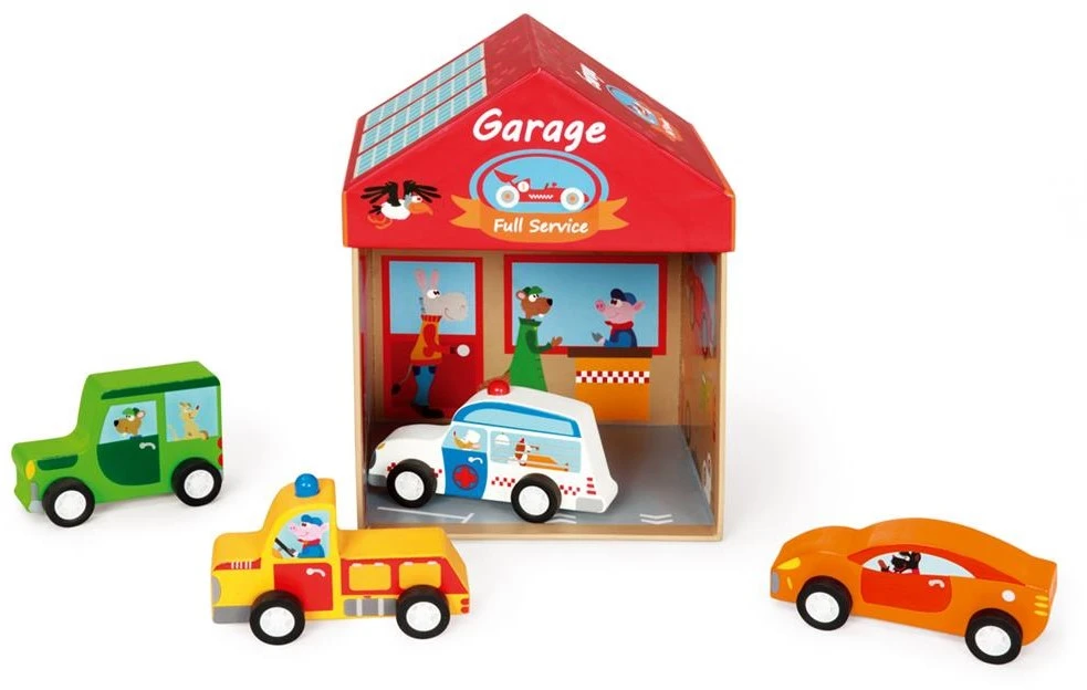 Scratch 6181087 Spielewelt Garage, Holzfiguren-Set mit Spielkulisse für Kinder ab 3 Jahren