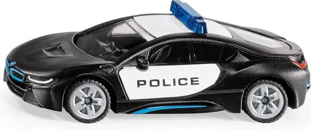 Detailliertes Spielzeugmodell eines US-Polizeiauto auf Grundlage eines BMW i8 zum Spielen und Sammeln, Für große und kleine Polizei-Fans – Robustes und stabiles Design dank Metallkarosserie, Sehr gute Rolleigenschaften durch Bereifung aus Gummi – Ideal als Geschenk für Kinder zu bspw. Geburtstagen oder für zwischendurch geeignet, aber auch als Dekoration für Erwachsenen-Geburtstage oder Hochzeitsgeschenke – Perfekt zum platzsparenden Mitnehmen, Langanhaltender Spielspaß durch unzählige Kombinationsmöglichkeiten innerhalb der SIKU Spielwelt – Lieferumfang: 1x SIKU 1533 BMW i8 US-Polizeiauto, Material: Metall/Kunststoff, Abmessungen: 8,0 x 3,3 x 2,7 cm, Gewicht: 0,0442 kg, Farbe: Schwarz/Weiß, Serie: SIKU SUPER