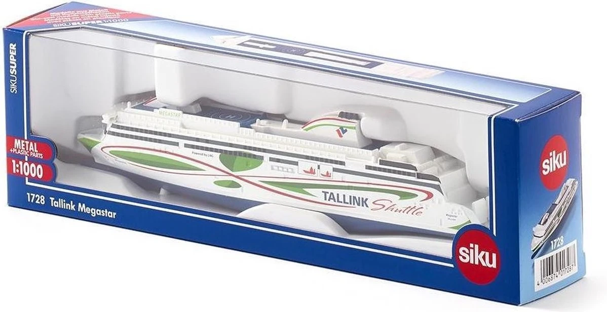 Detailliertes Spielzeug-Fähre Tallink Megastar zum Spielen und Sammeln, Für kleine und große Schifffahrtsfans – Robustes und stabiles Design dank Metallkarosserie, Modell nicht schwimmfähig – Ideal als Geschenk für Kinder zu bspw. Geburtstagen oder für zwischendurch geeignet, aber auch als Dekoration für Erwachsenen-Geburtstage oder Hochzeitsgeschenke – Perfekt zum platzsparenden Mitnehmen, Langanhaltender Spielspaß durch unzählige Kombinationsmöglichkeiten innerhalb der SIKU Spielwelt – Lieferumfang: 1x SIKU 1728 Tallink Megastar, Material: Metall/Kunststoff, Maßstab: 1:1000, Abmessungen: 20,8 x 3,5 x 6,5 cm, Gewicht: 0,196 kg, Farbe: Weiß/Blau/Grün, Serie: SIKU SUPER