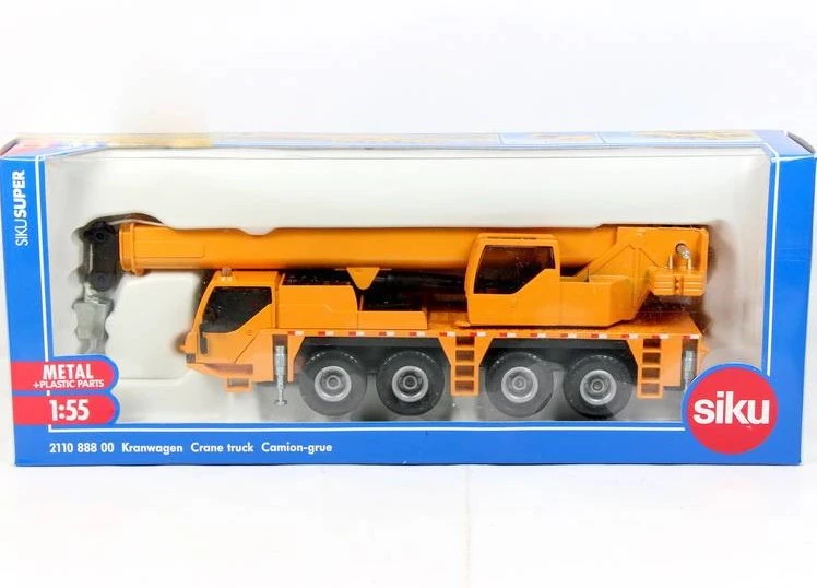 Originalgetreue Nachbildung eines Kranwagens zum Spielen und Kombinieren mit weiteren SIKU Spielzeugen – Umfangreiche Funktionen: Doppelt teleskopierbarer Ausleger, ausfahrbare Metallstützen für sicheren Stand, Drehbarer Kran inkl. Kabine, Manuell steuerbare Seilwinde – Hohe Stabilität: Großteil des Spielzeugmodells und Kranhaken aus Metall, Für Fliesen, Parkett oder auch Teppich geeignet – Ideal als Geschenk für kleine und große Kran- und Baustellenliebhaber geeignet, Perfekte Ergänzung zu SIKU Spielwelten – Lieferumfang: 1x SIKU 2110 Kranwagen, Maßstab: 1:55, Material: Metall/Kunststoff, Abmessungen: 26,5 x 6,2 x 6,9 cm, Gewicht: 0,487 kg, Farbe: Gelb, Serie: SIKU SUPER