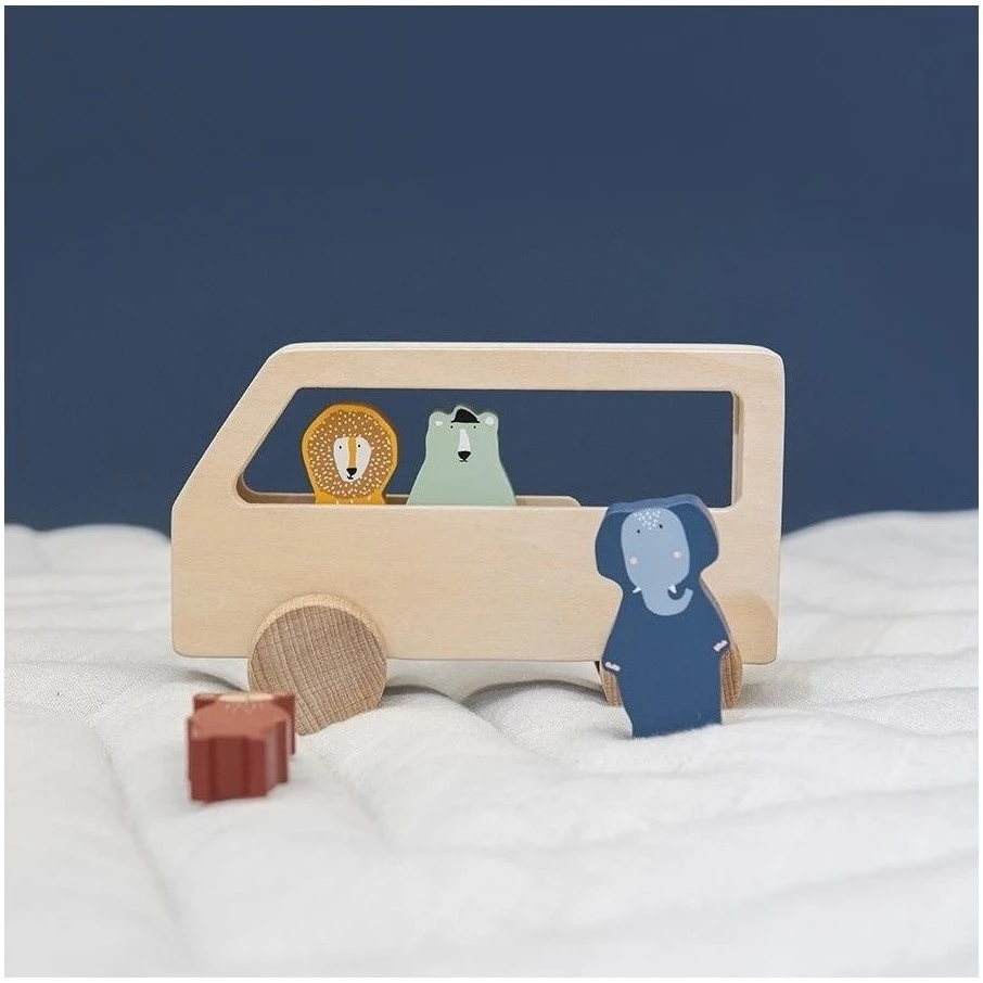 Der Bus und die Tiere sind aus 100 % FSC®-zertifiziertem Holz hergestellt. Sämtliche Farben sind auf Wasserbasis, ungiftig und sicher für Kinder.